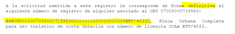 Ja, die Finca Casa Mas verfügt über die N° ETV/4833 sowie über die neu eingeführte Registriernummer für die Kurzzeitvermietung. Siehe Foto: